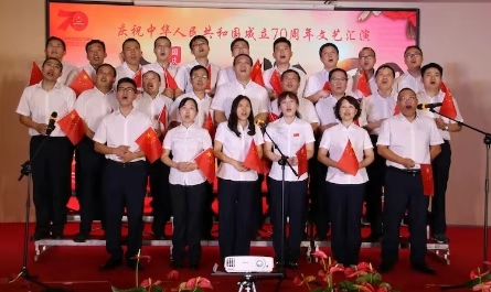 為慶祝新中國成立70周年 ,9月29日下午,由兗州中材和山東地質總隊聯合舉辦的“盛世華誕 輝煌70”國慶文藝匯演隆重舉行。 一首首優美的歌聲、一段段好看的舞蹈表達了對祖國母親生日的祝福。一首《國家》,把祖國這70年來的情懷用歌曲的形式表達,祝愿我們祖國的明天會越來越好,家是國,國更是家。一首《映山紅》,那優美的旋律、深情的歌詞表達了對紅軍的熱愛和對英雄的崇敬之情。一首《今天是你的生日》表達了對祖國母親深深的熱愛和祝福。本次匯演形式多種多樣,精彩紛呈。包括舞蹈、合唱、獨唱、相聲小品、樂器獨奏等。          通過本次文藝匯演增進了兗州中材和山東地質總隊的友誼,展現了“不忘初心、牢記使命”主題教育的新成果,增強國慶的節日氛圍,更加增強全體職工的愛國之心。 |