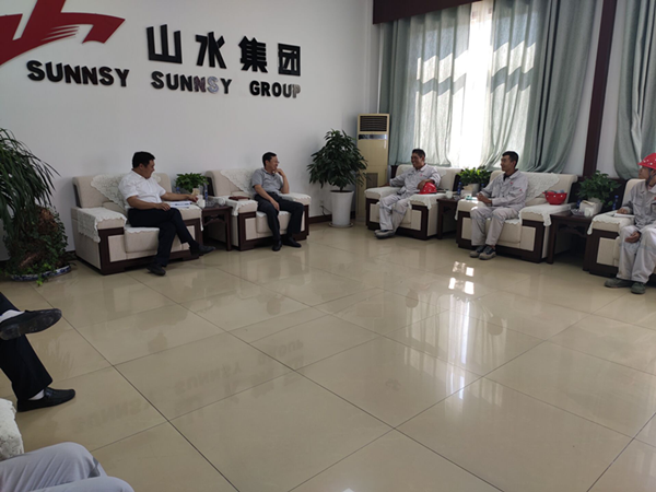 蘇逵聽完介紹后,對分公司工作給予肯定,對與業(yè)主間親密的工作配合給予好評。 參觀結束后,蘇逵一行在平陰山水接待室召開了“不忘初心、牢記使命”主題教育民主座談會。分公司經理助理曾令彬、職工代表任增虎、學生代表米廣宇代表分公司職工參加。蘇逵表示,這次來到平陰分公司,就是想聽一聽大家對企業(yè)的想法與意見,本著為職工解決問題的目的而來。蘇逵同與會代表對職工在分公司工作情況、生活條件、薪金待遇、個人家庭等多個方面進行了詳細的交流,聽取了與會代表的意見和建議。并對職工關心的問題與公司柯總及王書記交換了意見。 最后蘇逵要求,分公司在工作上要精益求精,充分體現作為央企的工作作風與實力。