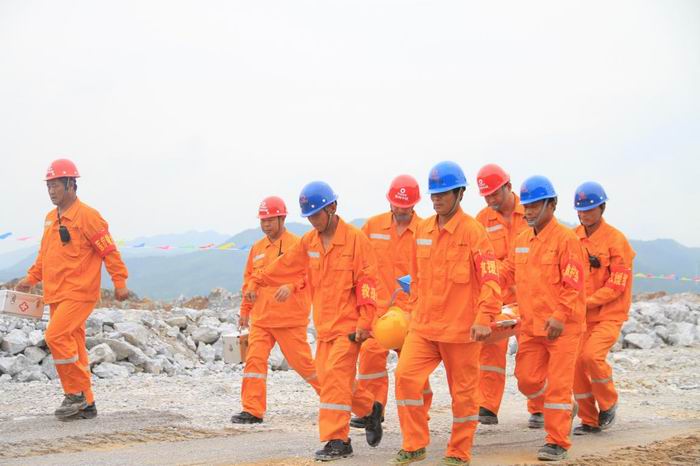 兗州中材建設有限公司瑞金項目部緊緊圍繞2017年安全月主題“全面落實企業安全生產主體責任”,為進一步增強項目部全體干部職工應對突發事故的綜合處置及應急救援能力,鍛煉和提高應急救援組織搶險救災過程中與各單位協調、配合救援的實戰能力,保障員工生命財產安全, 6月28日,兗州中材建設有限公司瑞金項目部在瑞金萬年青公司“貓子寨”石灰石礦山北區+255米平臺開展礦山爆破事故應急救援演練。 贛州市安監局副局長李興榮、瑞金市安監局局長鐘隆發和瑞金市公安局、瑞金市中醫院(醫護人員)、云石山鄉政府、云石山鄉派出所、瑞金市各礦山企業負責人應邀到現場觀摩,瑞金萬年青公司領導班子成員李瑤、郭偉榮、余紅忠到場觀摩演練。公司副書記何芳訓及安全部副部長高金軒參與了本次演練。邀請了瑞金市電視臺、瑞金市電臺、瑞金報社及瑞金市精誠傳媒公司進行現場取材報道。 本次演練設置了現場指揮組、警戒組、救援組、醫療救護組、后勤保障組、技術組、通信保障組,現場指揮為項目經理吳新海。整個演練活動分為演練注意事項講解、事故現場模擬、緊急救援演練和演練總結評估等內容。 為增加演練的真實性和有效性,在應急救援正式演練前,瑞金項目部在演練區域進行了一次真實的爆破,由于爆破剛剛結束,各救援組成員均在各自不同的崗位上,擺脫以往應急演練時各救援組已經集結等待救援的模板形式,通過人員的集結,檢驗了救援組集結速度、效率、協同及時效。 在現場總指揮的統籌安排和正確指揮下,全體演練人員共同努力圓滿完成了本次爆破事故應急救援演練。11點20分,所有參演人員在項目部礦山辦公室現場召開了演練評估會,項目部經理吳新海進行了演練總結,贛州市安監局副局長李興榮對本次演練進行了點評。 本次演練歷時1個半小時,達到了預期演練目的,通過這次演練,使所有應急救援人員進一步熟悉、掌握應急救援知識,提高員工的應急救援水平,鍛煉了員工自救、急救的能力。也使我們積累了應對突發事件的實戰經驗,增強全體員工的安全意識。    |