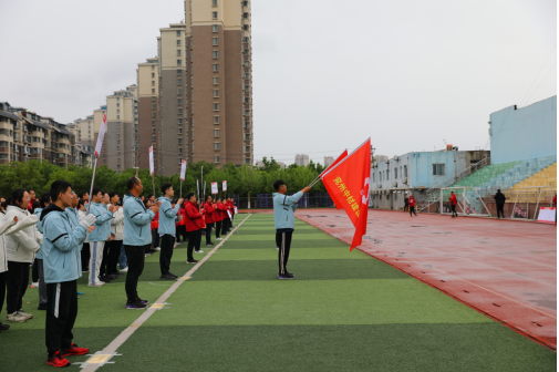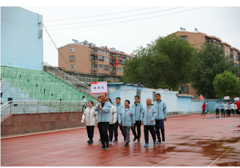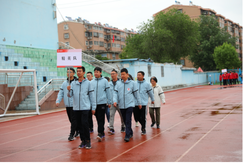 (兗州中材黨委委員、副總經(jīng)理顏景祥致詞) 踏著激昂的運動員進行曲節(jié)拍,運動員們精神抖擻、斗志昂揚,排列著整齊的方陣,在旗手的引領(lǐng)下,喊著響亮的口號,依次有序地走過主席臺。