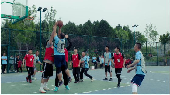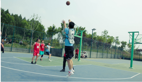 九、籃球賽 他們士氣如虹、激情碰撞 時進時退,時緩時急,時而三分遠(yuǎn)投,時而轉(zhuǎn)身跳投 激情與緊張同在,友誼與競爭共存