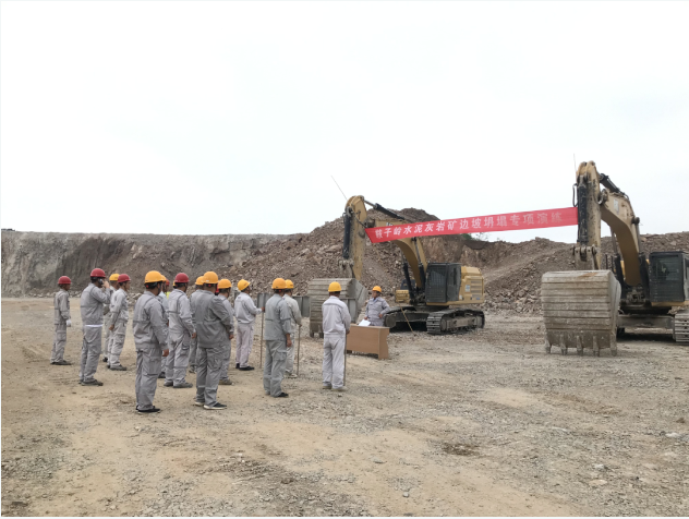 上午10時整,演練正式拉開序幕。假設情況是該露天礦山某區域發生了邊坡坍塌,造成一名作業人員腿部受傷被困。接到報告后,項目副經理楊宇立即啟動應急預案,迅速組織了由醫療救護組、應急搶險組、警戒保衛組、物資保障組等部門人員組成的應急救援隊伍,攜帶救援裝備,迅速趕赴事故現場。同時,通訊保障組也迅速建立起臨時通訊網絡,確保現場信息暢通無阻。