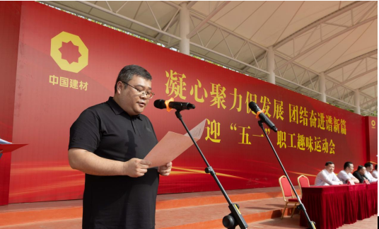 兗州中材黨委委員、副總經(jīng)理尹超為運(yùn)動(dòng)會(huì)致開幕詞。