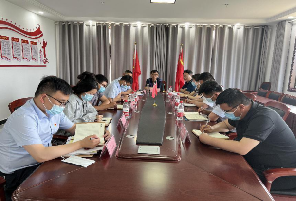 2022年6月10日兗州中材禹州蕭縣黨支部與焦作晉城黨支部在白坪分公司召開預備黨員轉正會議,公司黨委副書記何芳訓、黨群部長李增光、部長助理逯瑞及兩支部黨員參加了會議。