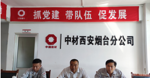 為進一步加強黨建引領,落實新時代黨的建設總要求,推動黨的建設與公司發展同頻共振,達到資源共享、共同促進的目的,根據中材礦山黨發《關于中材礦山黨委及所屬公司黨委委員聯系支部(項目)共建點的通知》,2023年8月7日上午,兗州中材棲霞分公司與中材西安煙臺分公司聯合開展黨建共建活動。中材西安副總經理王保存參加了活動。
